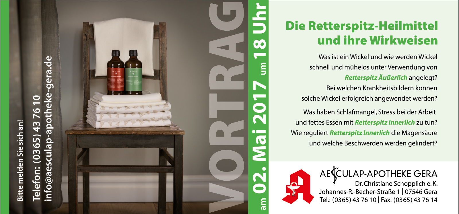 Seit über 110 Jahren vertreibt die Firma Retterspitz eine Flüssigkeit, welche als Grundlage für Wickelanwendungen nicht nur in der privaten Hausapotheke, sondern auch im modernen Klinikalltag und in Rehazentren Anwendung findet. Mit dieser Flüssigkeit, dem Retterspitz-Äußerlich, wollen wir uns in diesem Seminar näher befassen.